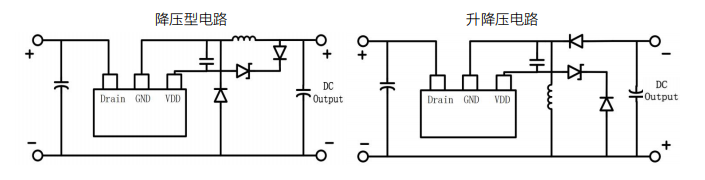 •主要特点: 高精度5V默认输出;集成500V高压MOSFET和高压启动电路;集成采样电阻,超低系统成本;支持超低压输入(15V以上)应用;支持降压和升降压电路;开关式峰值电流模式控制;超低待机功耗小于50mW;超低工作电流,支持小VDD电容;集成软启动电路;集成 31KHz带抖频功能振荡器;集成式保护功能:、过载保护(OLP)、过热保护(OTP)、逐周期电流限制(OCP)、前沿消隐(LEB);VDD欠压保护;封装SOT23-3L