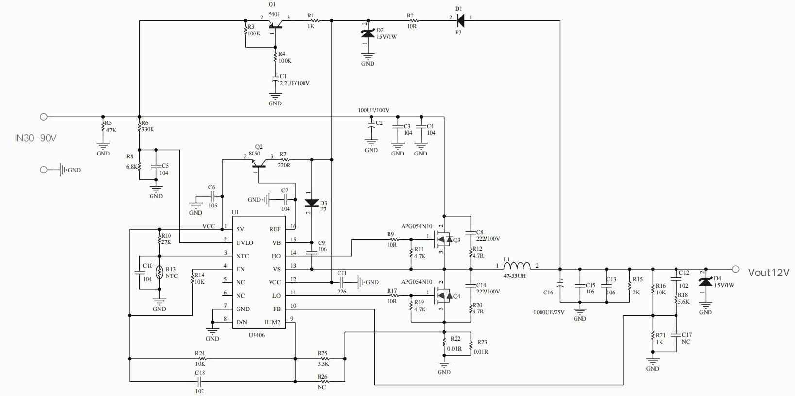 宽输入电压范围9.5V至400V
