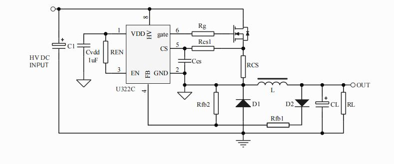 U322C是一款高性能低成本PWM控制功率器,适用于离线式小功率降压型应用场合,外围电路简单、器件个数少。同时产品内置高耐压MOSFET可提高系统浪涌耐受能力。与传统的PWM控制器不同,U322C内部无固定时钟驱动MOSFET,系统开关频率随负载(轻载、重载)变化可实现自动调节。同时芯片采用了多模式PWM控制技术,有效简化了外围电路设计,提升线性调整率和负载调整率并消除系统工作中的可闻噪音。此外,芯片内部峰值电流检测阈值可跟随实际负载情况自动调节,可以有效降低空载情况下的待机功耗。U322C集成有完备的带自恢复功能的保护功能:VDD欠压保护、逐周期电流限制、输出过压保护、过热保护、过载保护和VDD过压保护等。
