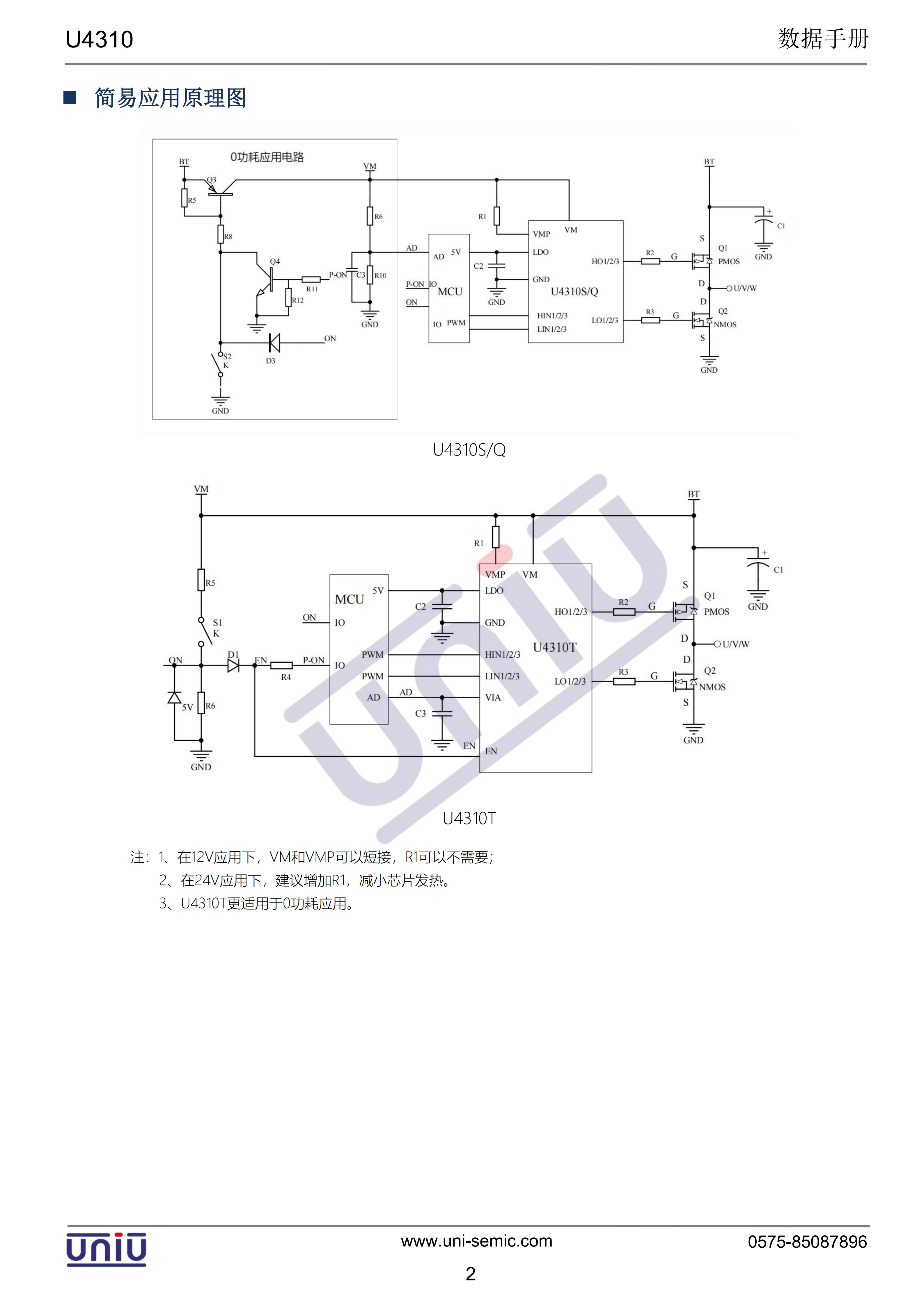 集成EN控制(0功耗):U4310T;集成电压检测(10:1):U4310T;VM电压范围:5.0-40.0V;驱动三相P+N独立半桥;兼容3.3/5V输入逻辑;驱动电流:+400mA/-100mA(typ.);死区时间:60ns(typ.);集成VM欠压保护;集成5V LDO;5V LDO集成输出短路保护;