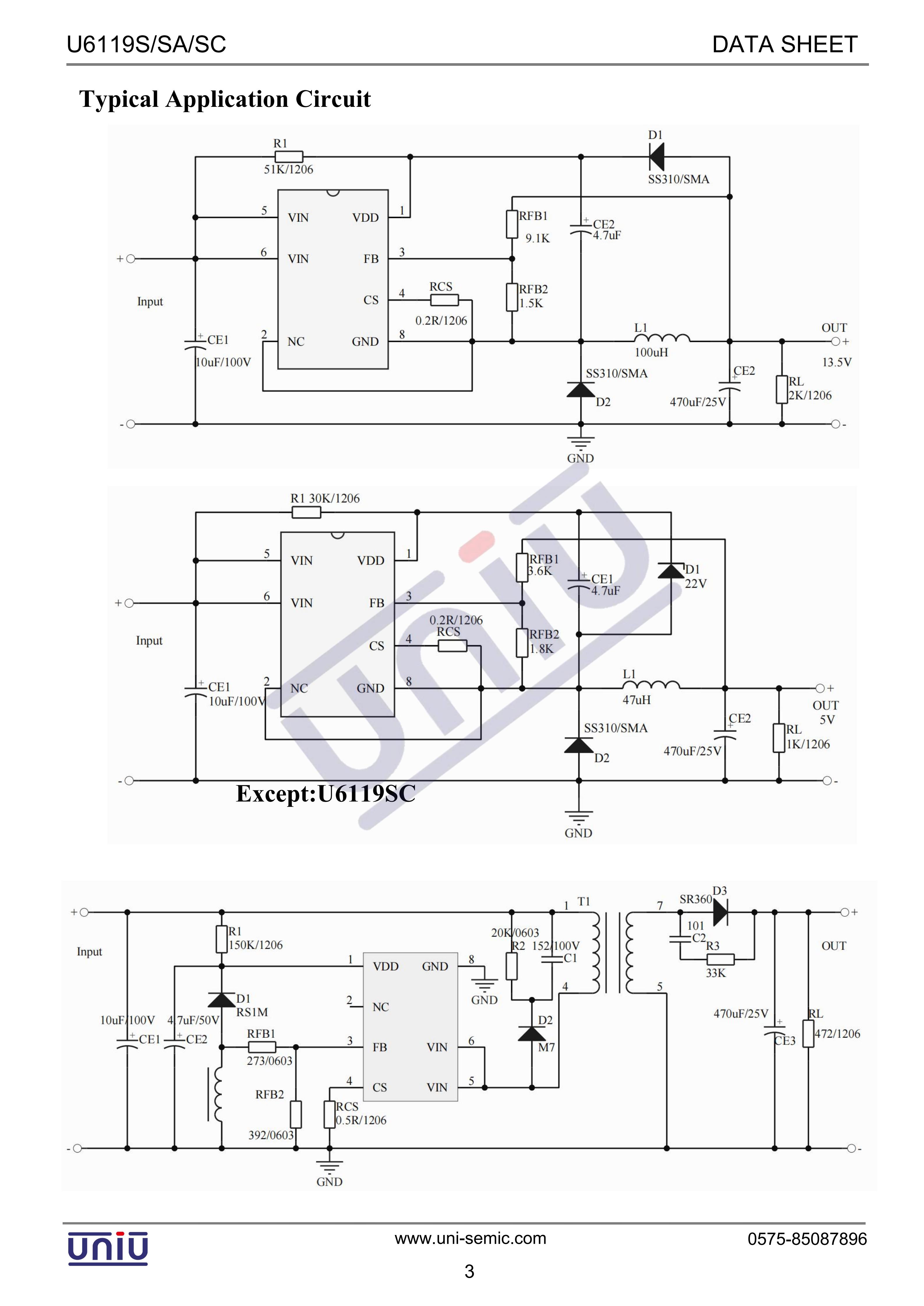 U6119S/SA/SC系列是一个单片控制电路,提供DC-DC电压转换的主要功能。该器件包括一个内部温度补偿基准,比较器,占空比控制振荡器与有源限流电路,驱动器和大电流输出开关。输出电压为ADJ Vol, no集成两个外部电阻,参考精度为2%。采用最少数量的外部元件,U6119S/SA/SC系列器件专为降压应用而设计。