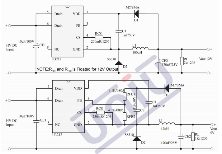 •产品描述:U3212是一款高性能低成本PWM控制功率器,适用于离线式小功率降压型应用场合,外围电路简单、器件个数少。同时产品启动模块内置高耐压MOSFET可提高系统浪涌耐受能力。与传统的PWM功率开关不同,U3212内部无固定时钟驱动MOSFET,系统开关频率随负载变化可实现自动调节。同时芯片采用了多模式PWM控制技术,有效简化了外围电路设计,提升线性调整率和负载调整率并消除系统工作中的可闻噪音。此外,芯片内部峰值电流检测阈值可跟随实际负载情况自动调节,可以有效降低空载情况下的待机功耗。U3212是一款高性能低成本PWM控制功率器,适用于离线式小功率降压型应用场合,外围电路简单、器件个数少。同时产品启动模块内置高耐压MOSFET可提高系统浪涌耐受能力。。U3212集成有完备的带自恢复功能的保护功能:VDD欠压保护、逐周期电流限制、输出过压保护、过热保护、过载保护和VDD过压保护等。