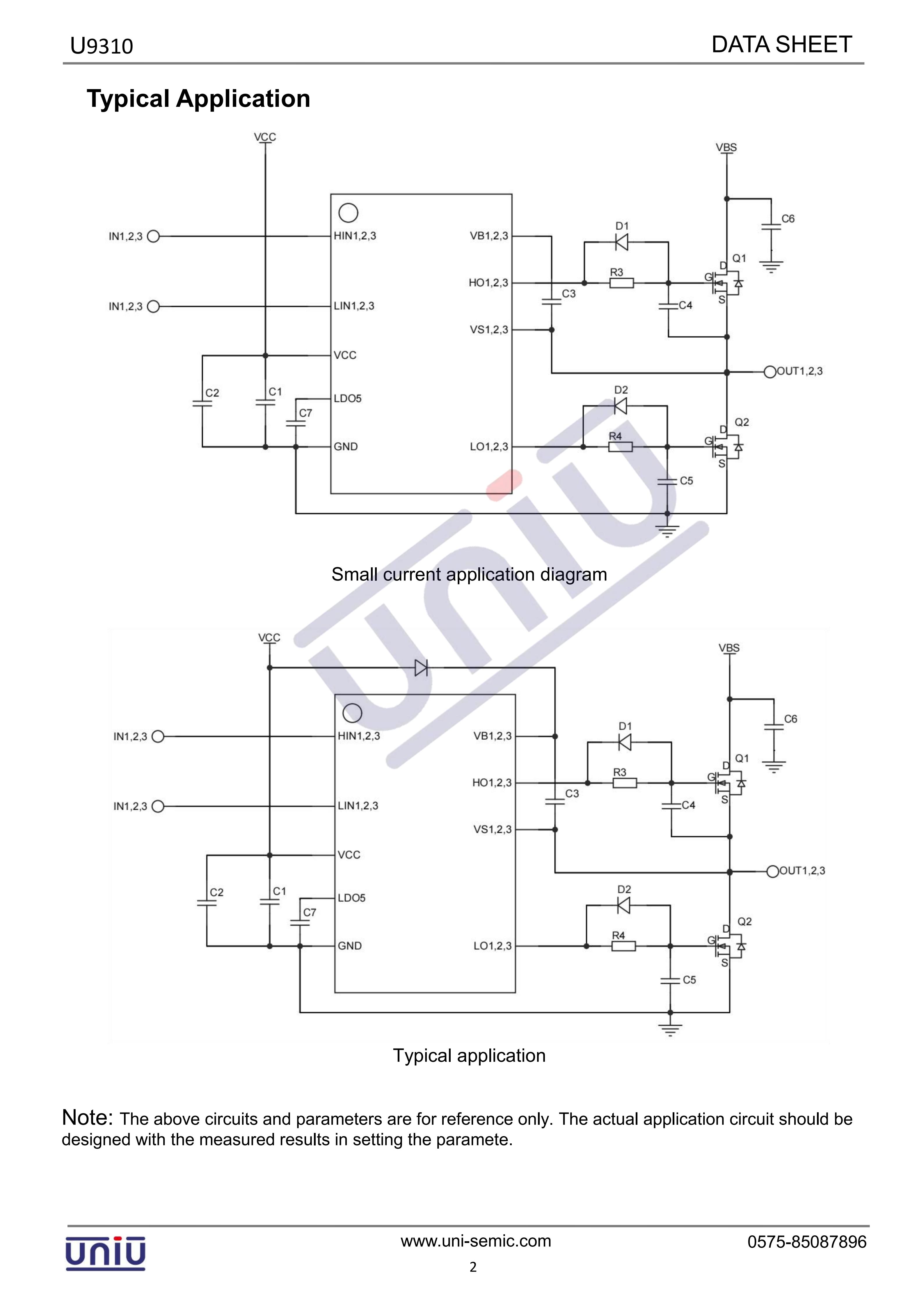 U9310是高压,高速功率MOSFET和IGBT驱动器,具有三个独立的高侧和低侧参考输出通道,适用于三相应用。专有的HVIC技术使坚固的整体结构成为可能。逻辑输入兼容CMOS或LSTTL输出,低至3.3V逻辑。输出驱动器具有高脉冲电流缓冲级,设计用于最小的驱动器交叉导通。传播延迟匹配,以简化在高频应用中的使用。浮动通道可用于驱动高侧配置的n通道功率mosfet或igbt,其工作电压高达600 V。