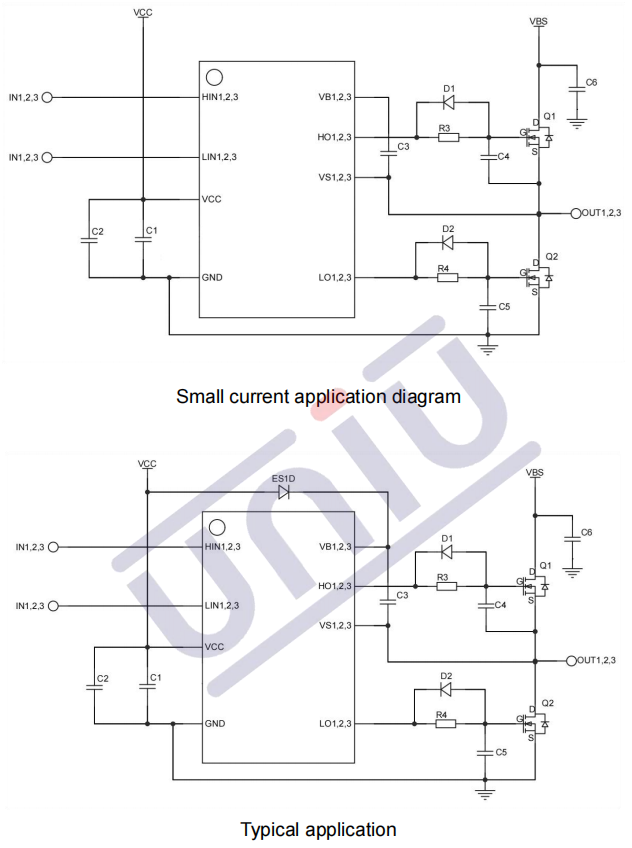 集成式 DBOOT;专为引导操作设计的浮动通道;可承受 +280 伏电压;能耐受负向瞬态电压;栅极驱动电源范围为 5V 至 20V;独立的 3 个半桥驱动器;VCC/VBS 电压欠压保护(UVLO);输出与输入同相;3.3V 输入逻辑兼容;更低的门极驱动电流变化率,以提高抗干扰能力